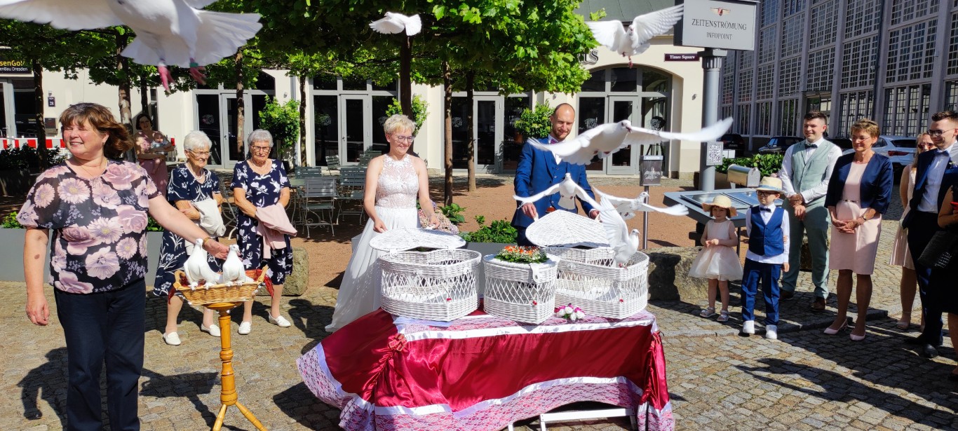 Hier finden sie Impressionen einiger unserer Taubenauflässe zu Hochzeiten in 2025.